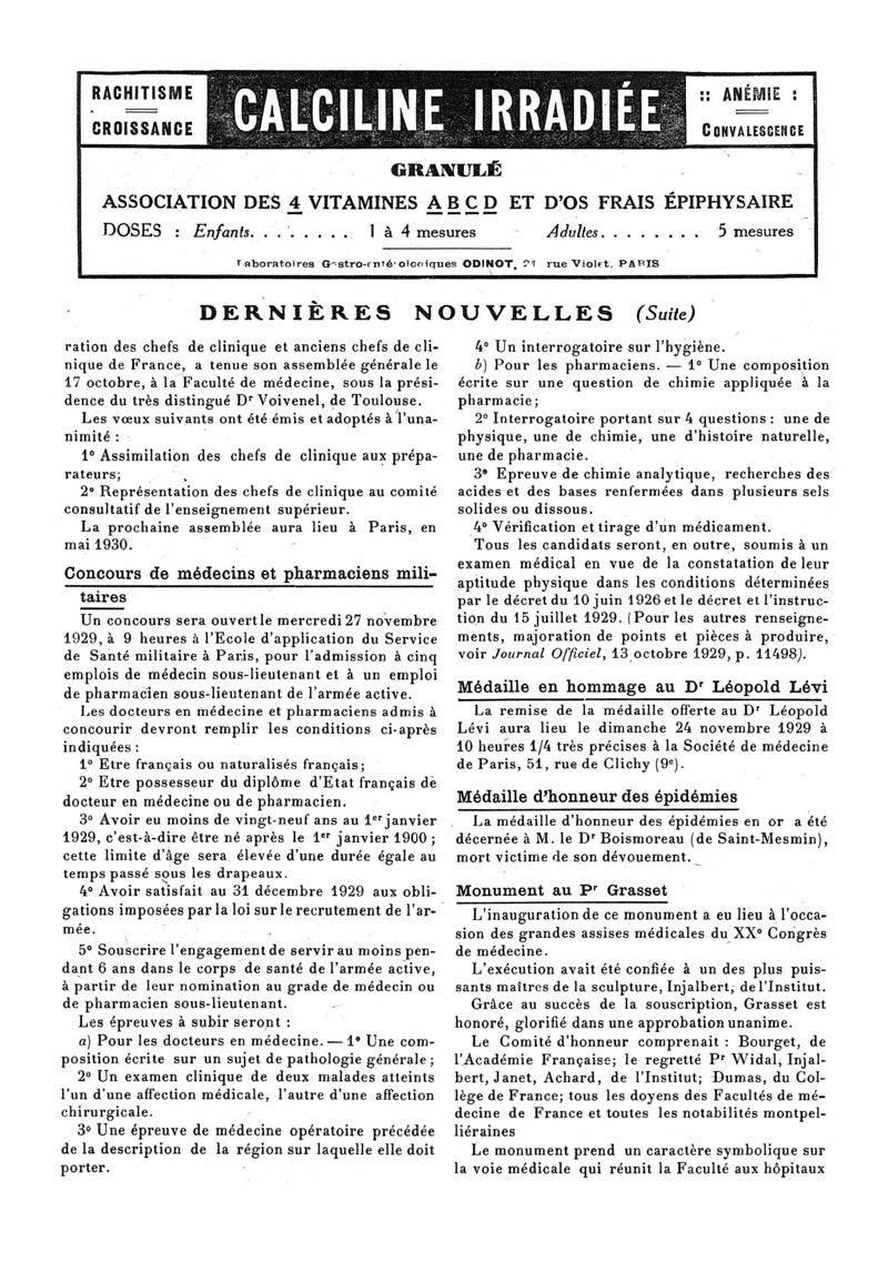 1929, n° 74, partie paramédicale. -