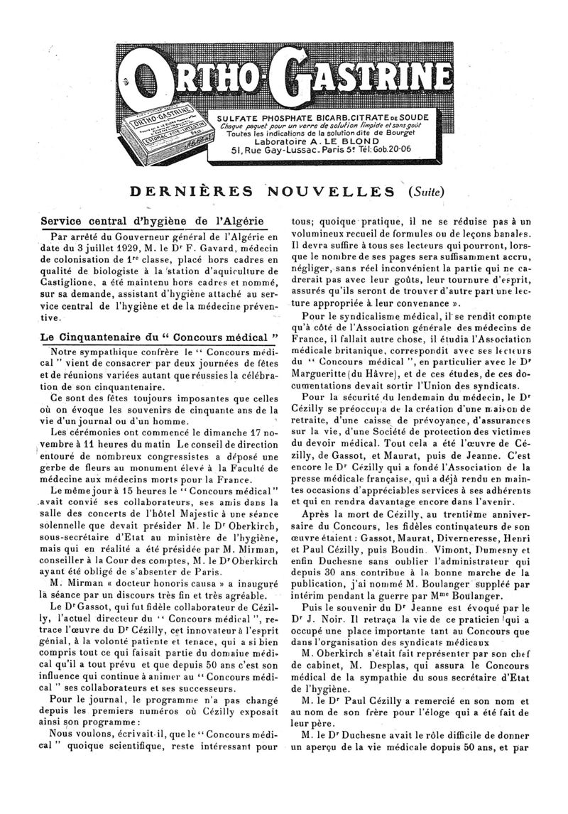 1929, n° 74, partie paramédicale. -