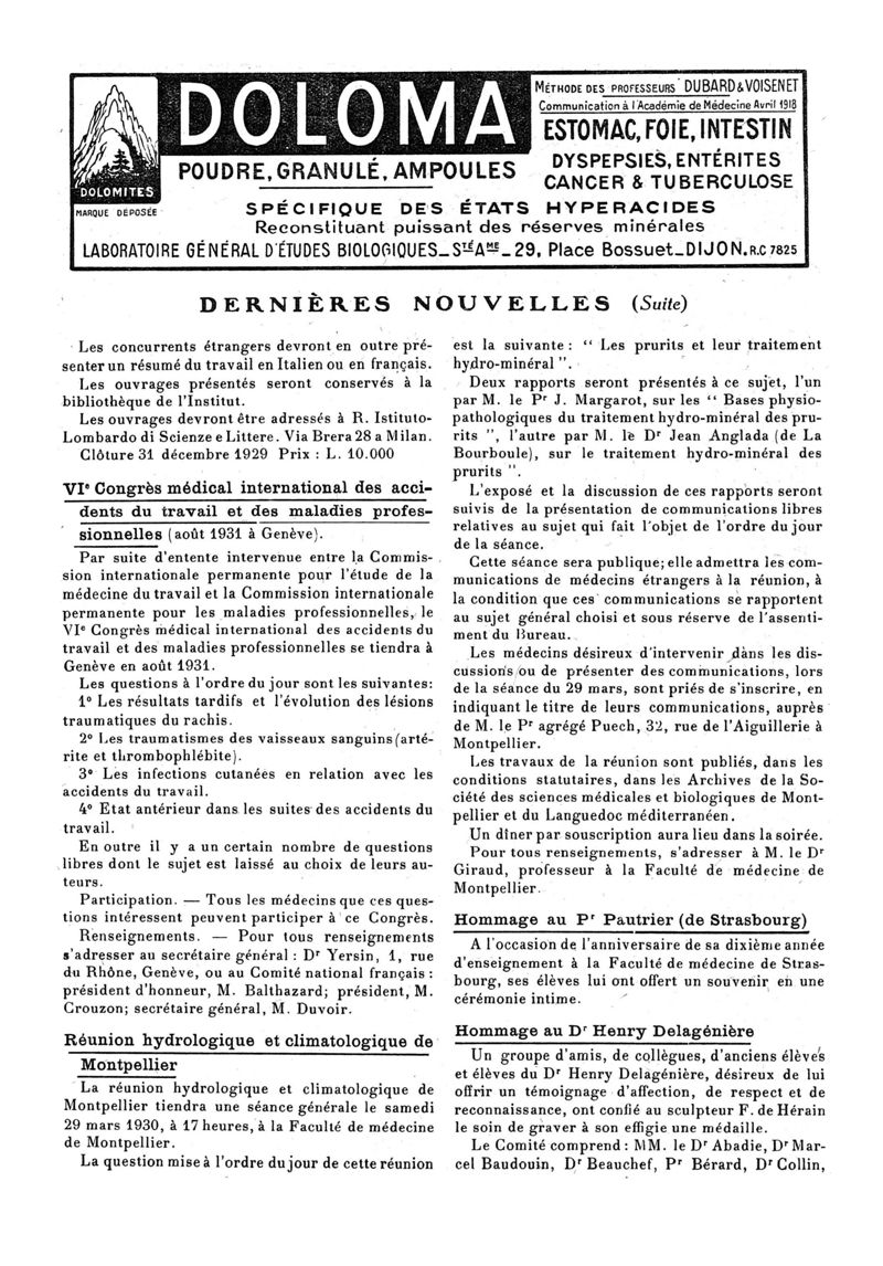 1929, n° 74, partie paramédicale. -