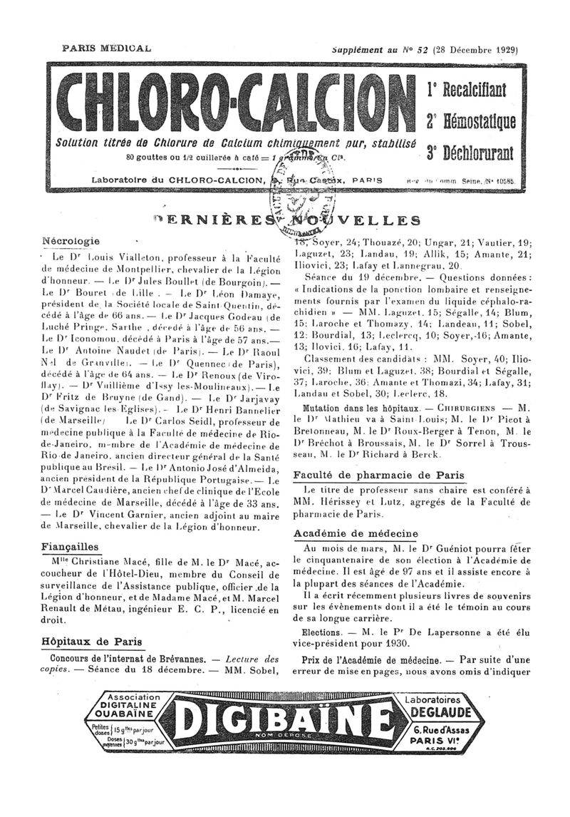 1929, n° 74, partie paramédicale. -