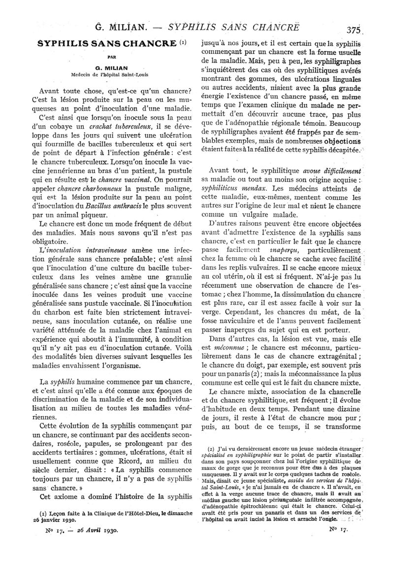 1930, n° 75, partie médicale. -