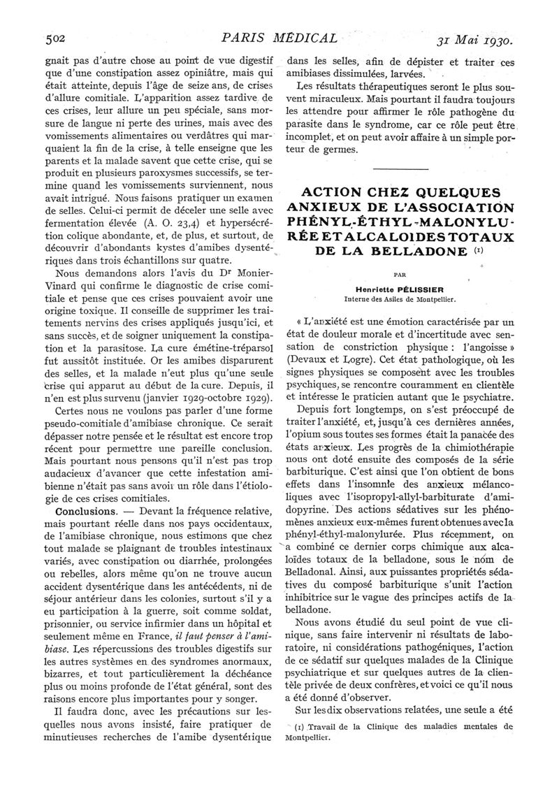 1930, n° 75, partie médicale. -