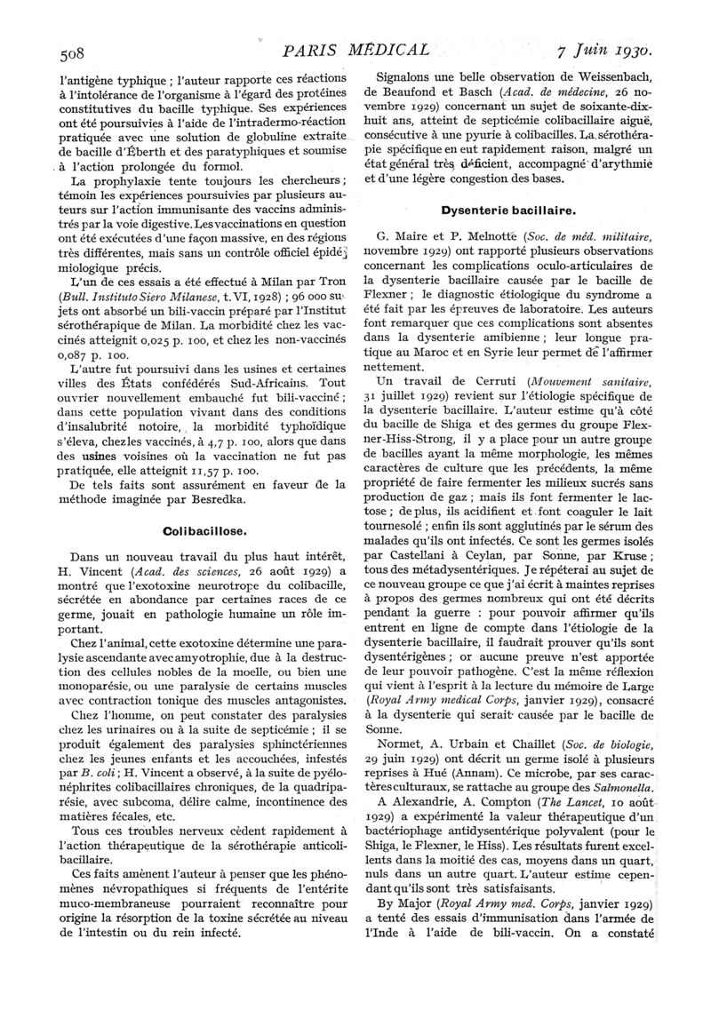 1930, n° 75, partie médicale. -
