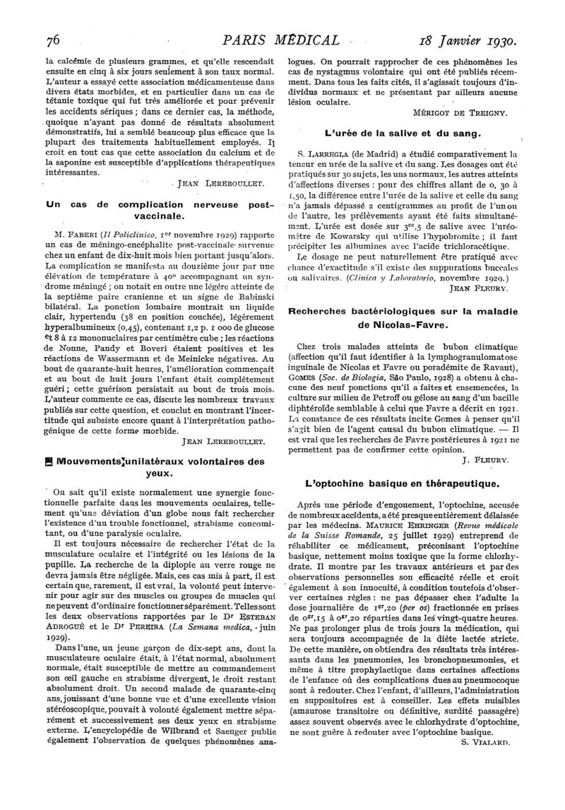 1930, n° 75, partie médicale. -