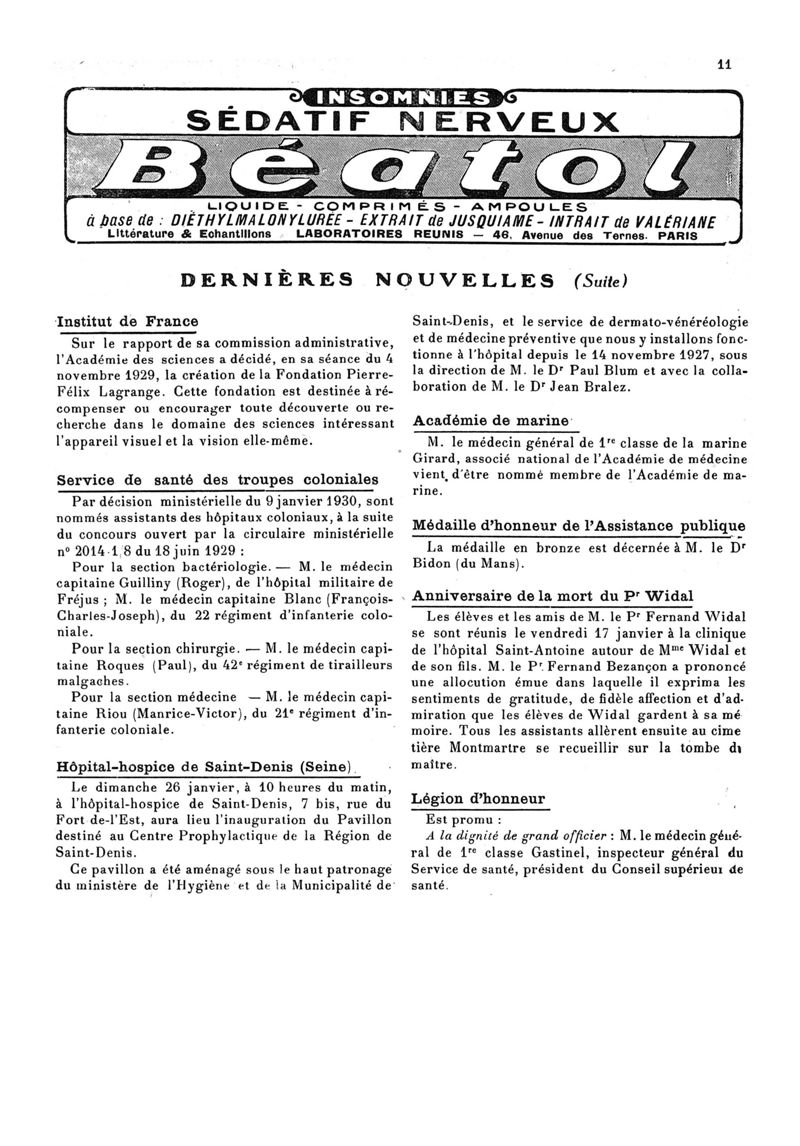 1930, n° 76, partie paramédicale. -