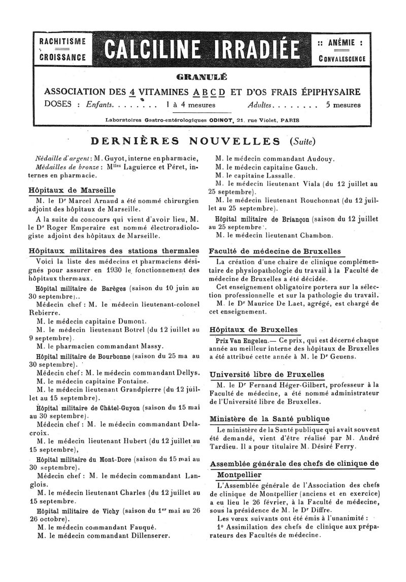 1930, n° 76, partie paramédicale. -