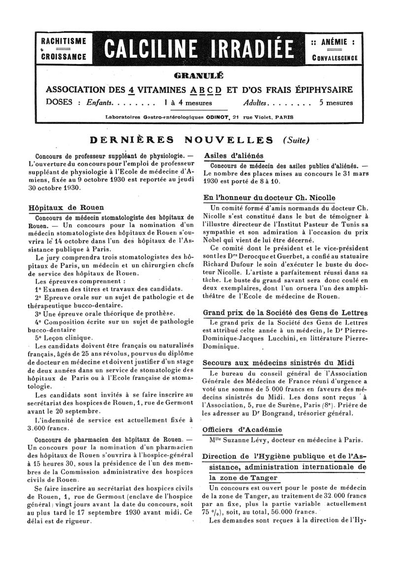 1930, n° 76, partie paramédicale. -