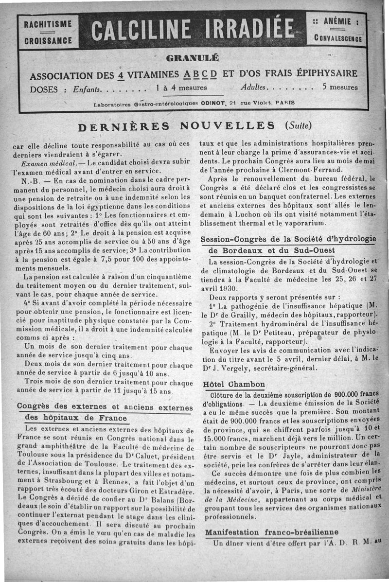 1930, n° 76, partie paramédicale. -