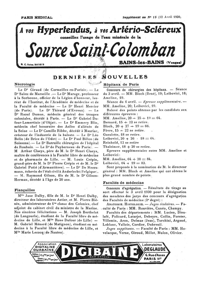 1930, n° 76, partie paramédicale. -