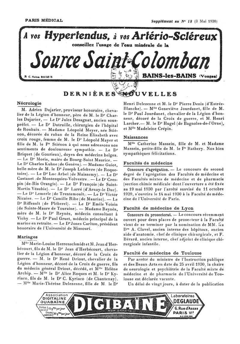 1930, n° 76, partie paramédicale. -