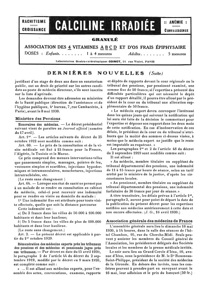 1930, n° 76, partie paramédicale. -