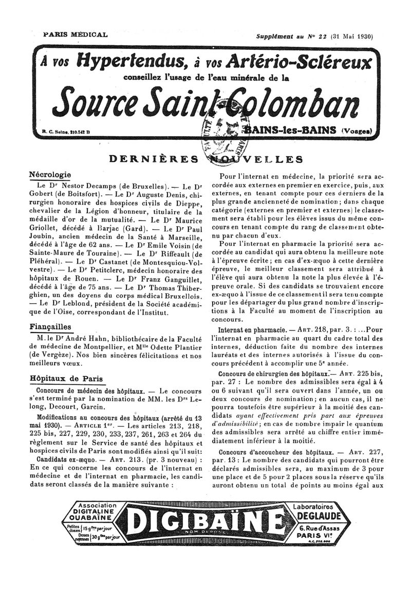 1930, n° 76, partie paramédicale. -