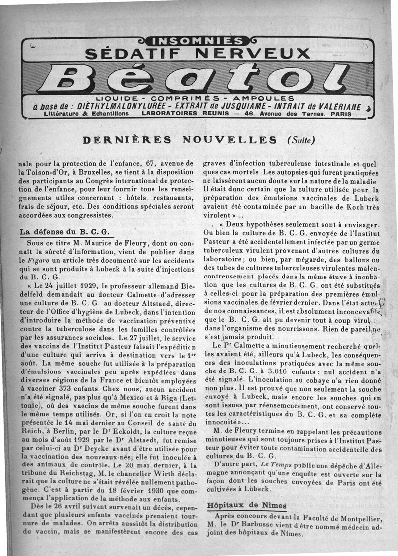 1930, n° 76, partie paramédicale. -