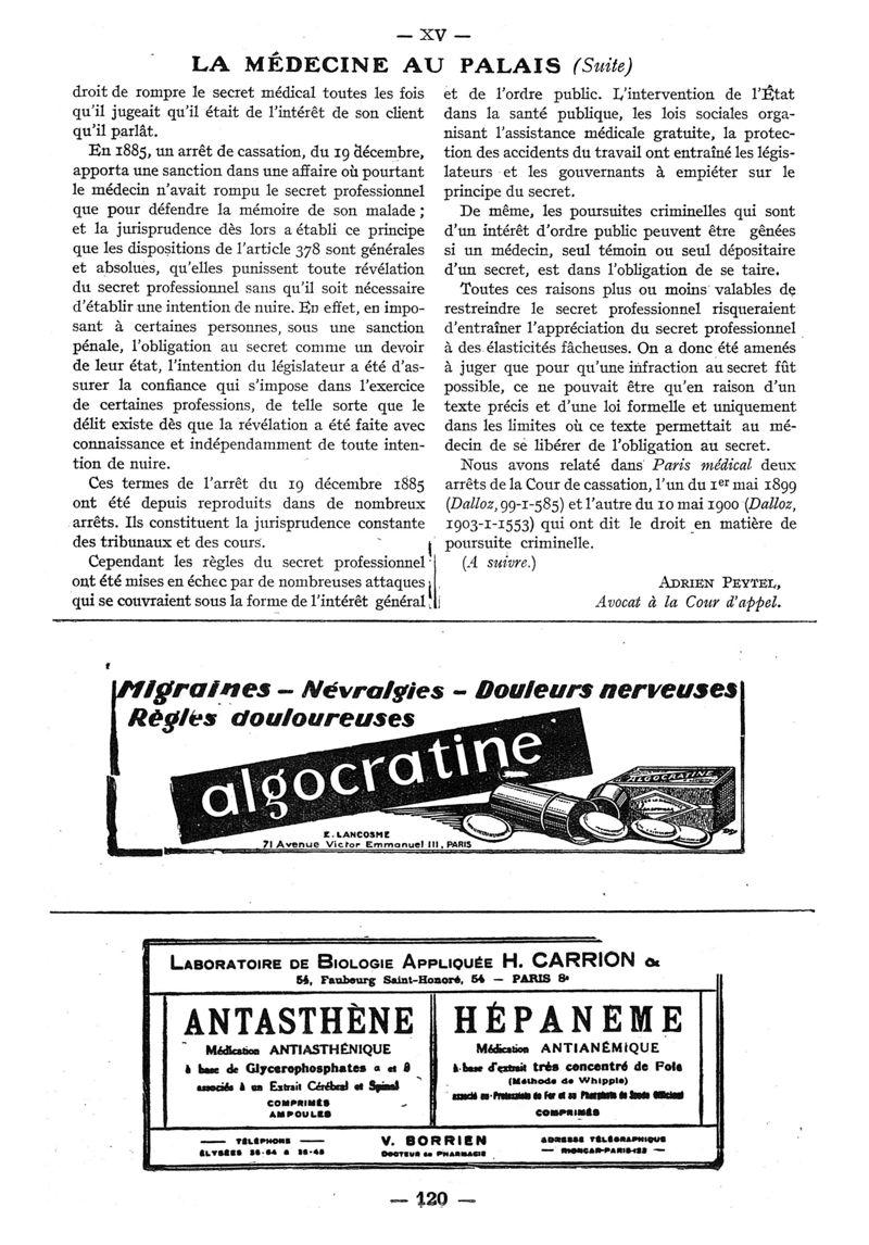 1930, n° 76, partie paramédicale. -