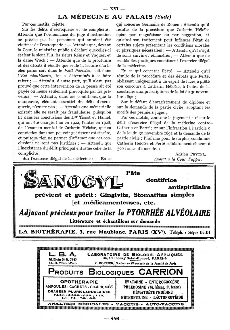 1930, n° 76, partie paramédicale. -