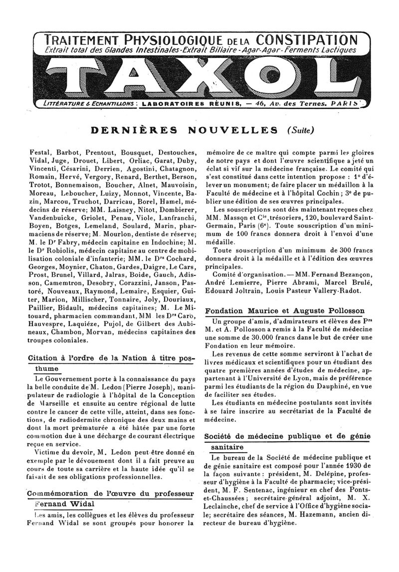 1930, n° 76, partie paramédicale. -