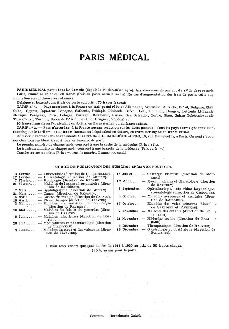 1930, n° 77, partie médicale. -