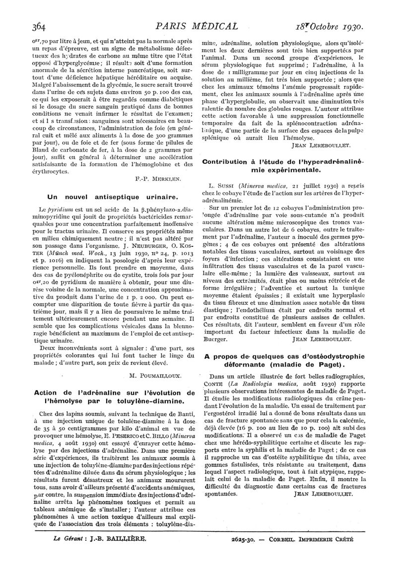 1930, n° 77, partie médicale. -