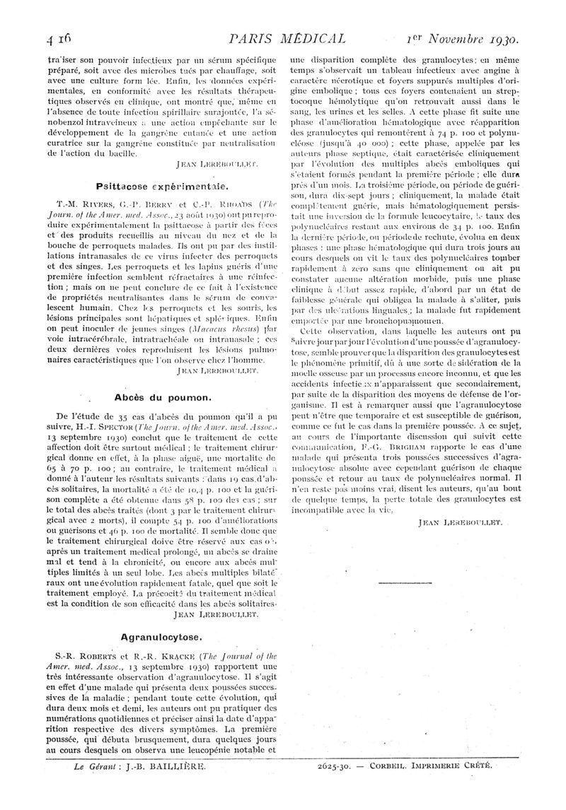 1930, n° 77, partie médicale. -