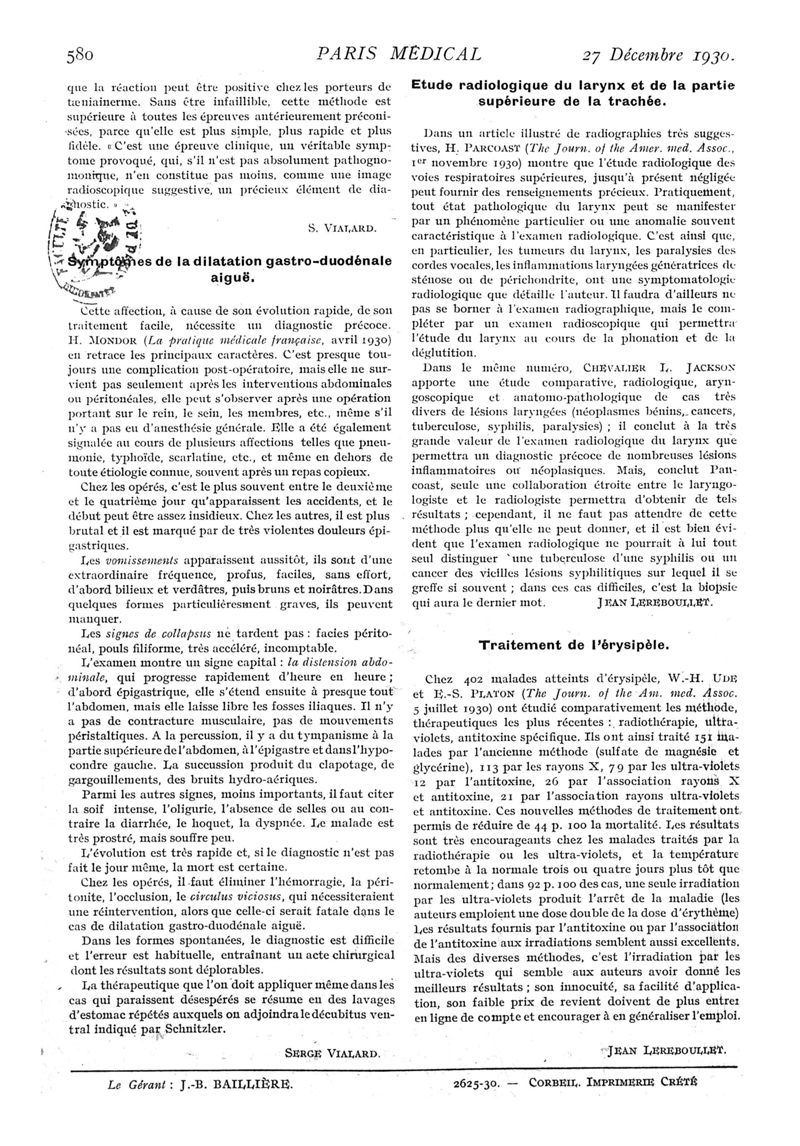 1930, n° 77, partie médicale. -