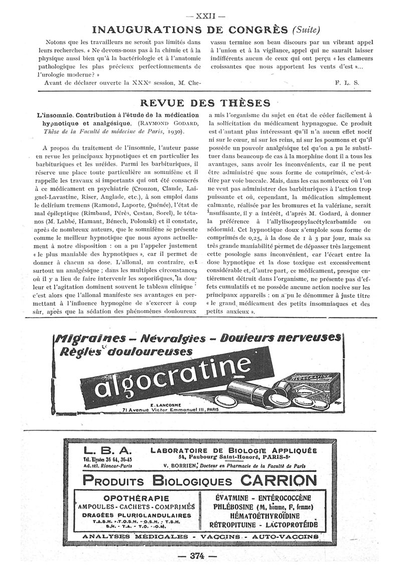 1930, n° 78, partie paramédicale. -