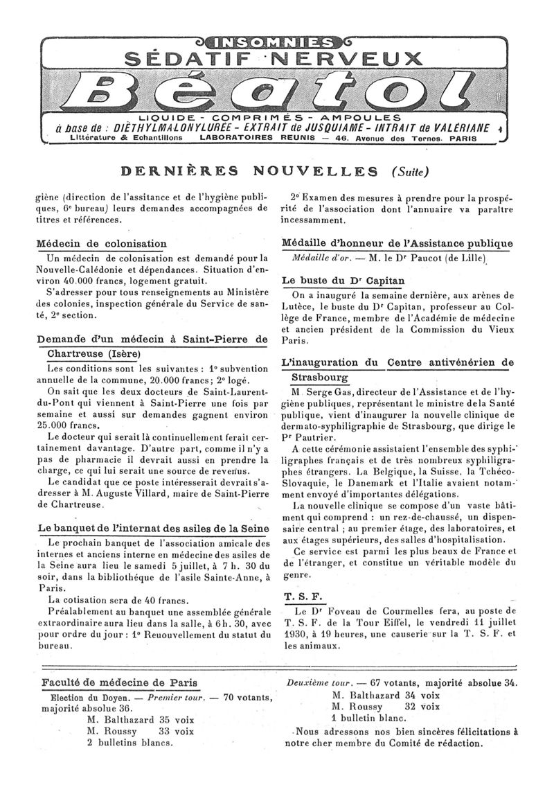 1930, n° 78, partie paramédicale. -