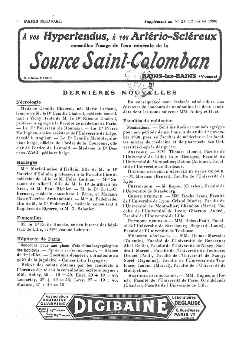 1930, n° 78, partie paramédicale. -