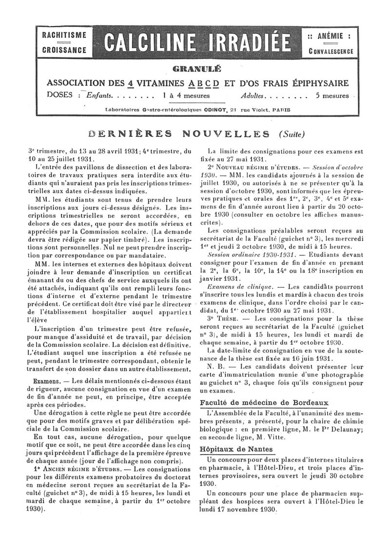 1930, n° 78, partie paramédicale. -