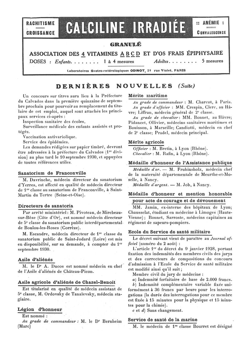 1930, n° 78, partie paramédicale. -