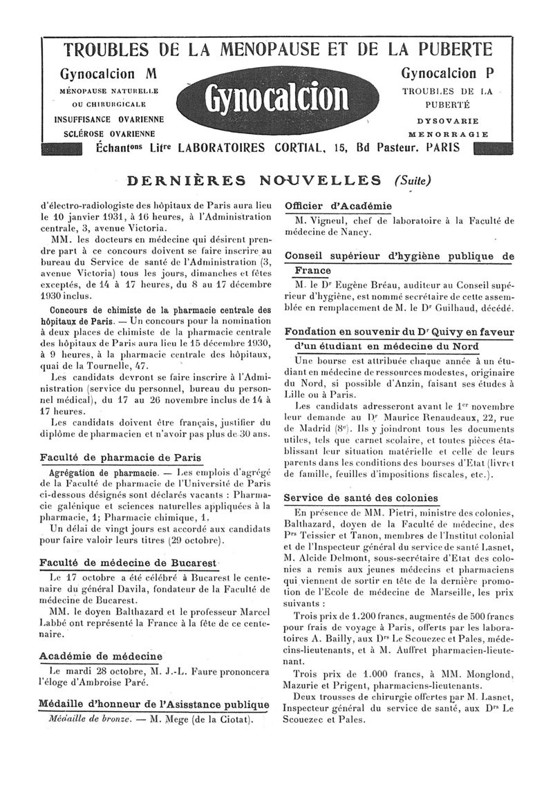 1930, n° 78, partie paramédicale. -