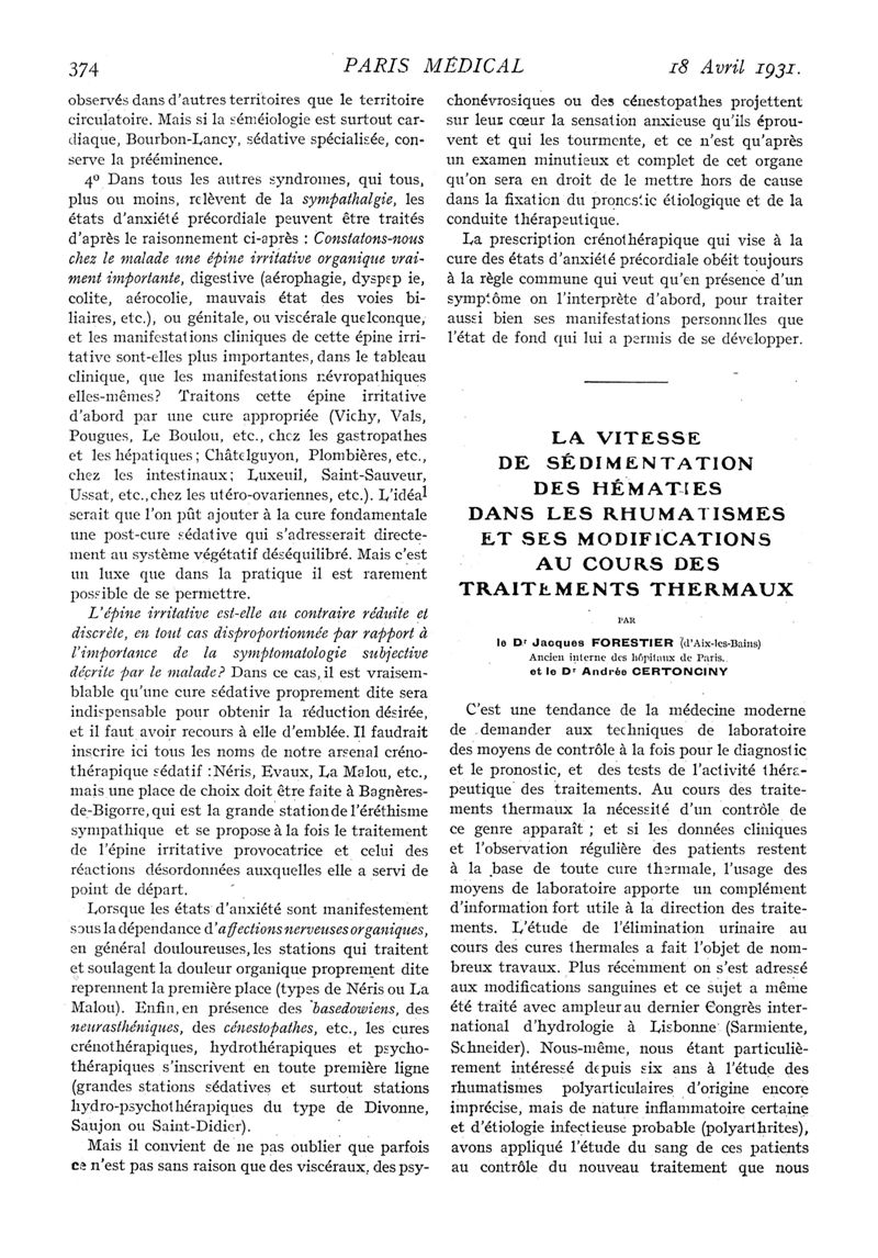 1931, n° 79, partie médicale. -