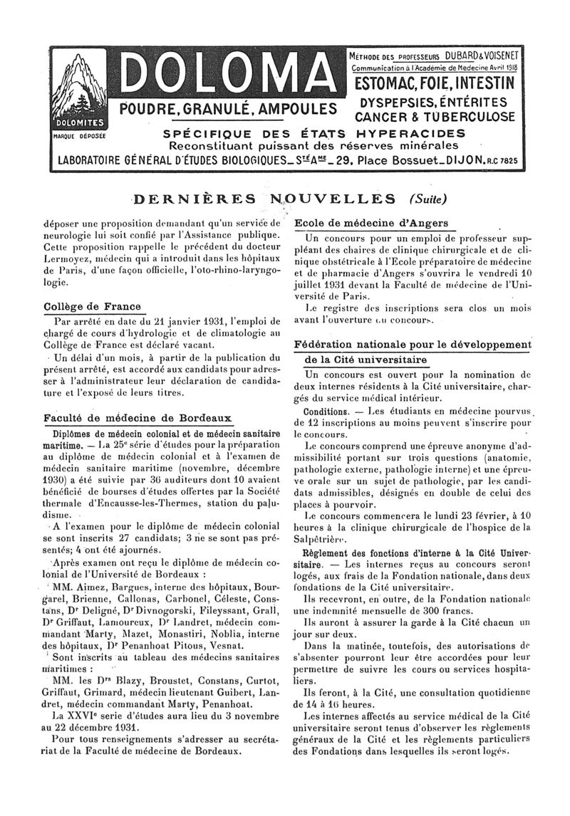 1931, n° 80, partie paramédicale. -