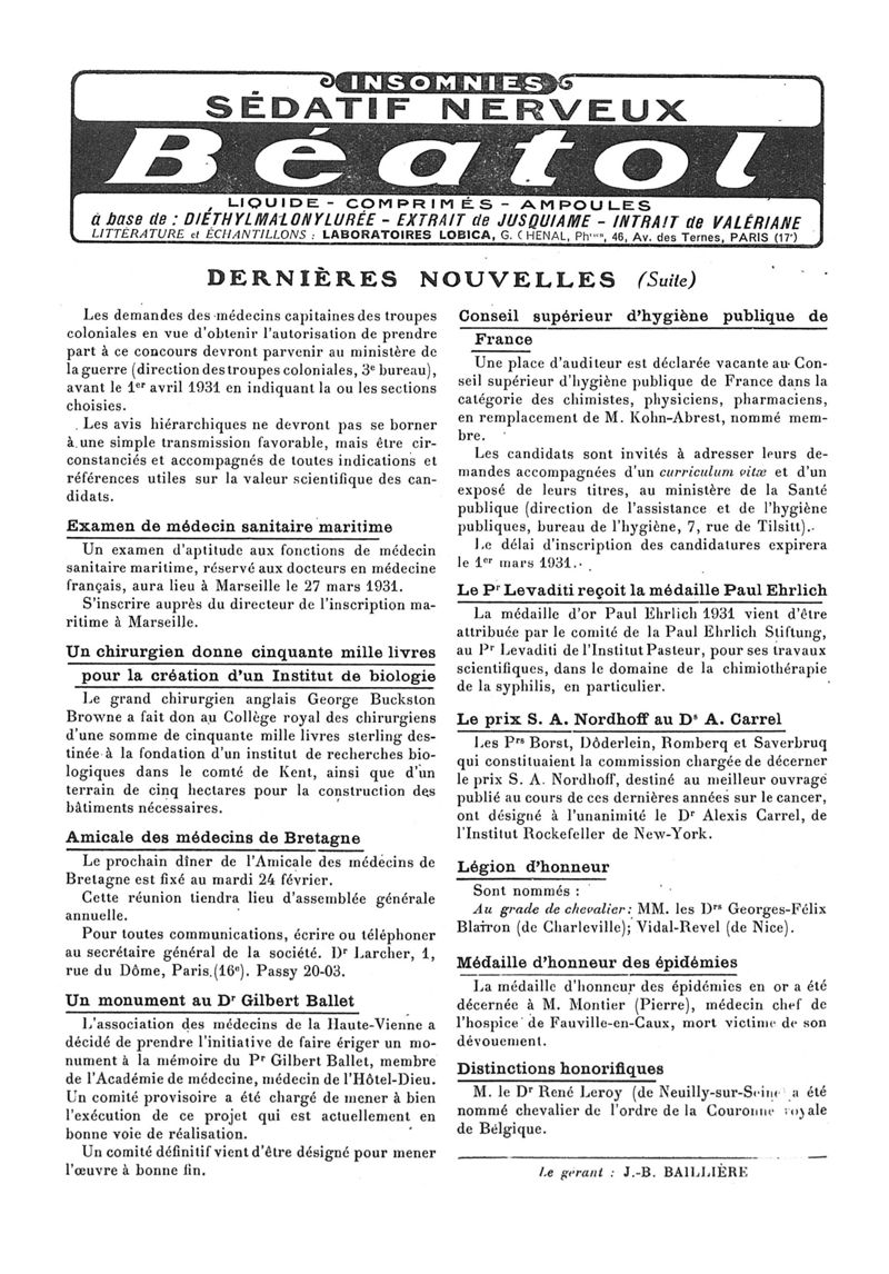 1931, n° 80, partie paramédicale. -