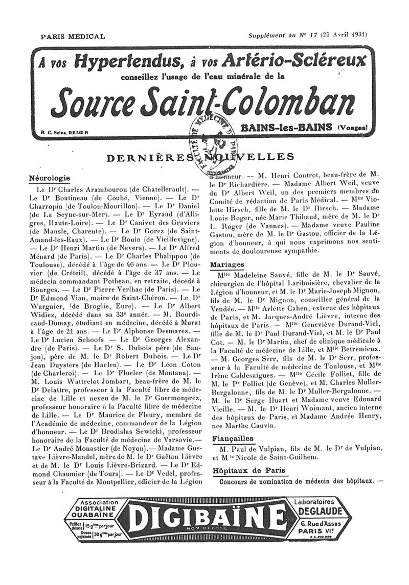 1931, n° 80, partie paramédicale. -