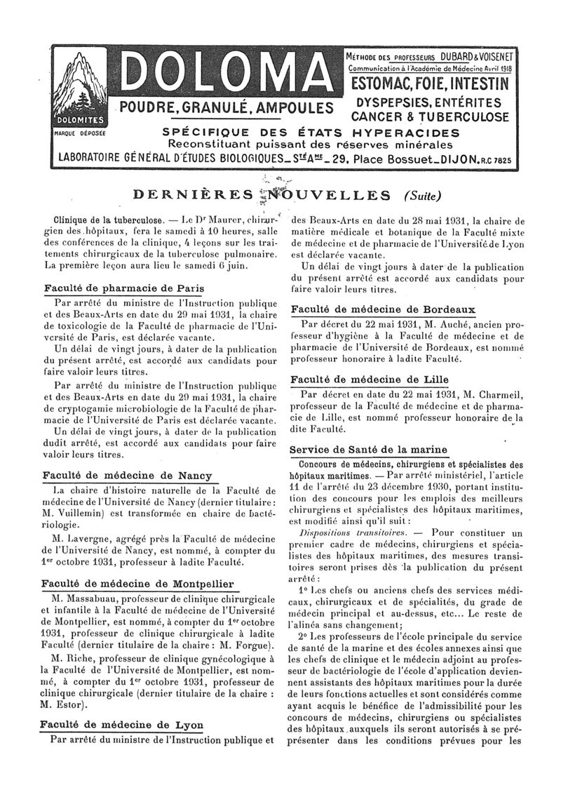 1931, n° 80, partie paramédicale. -