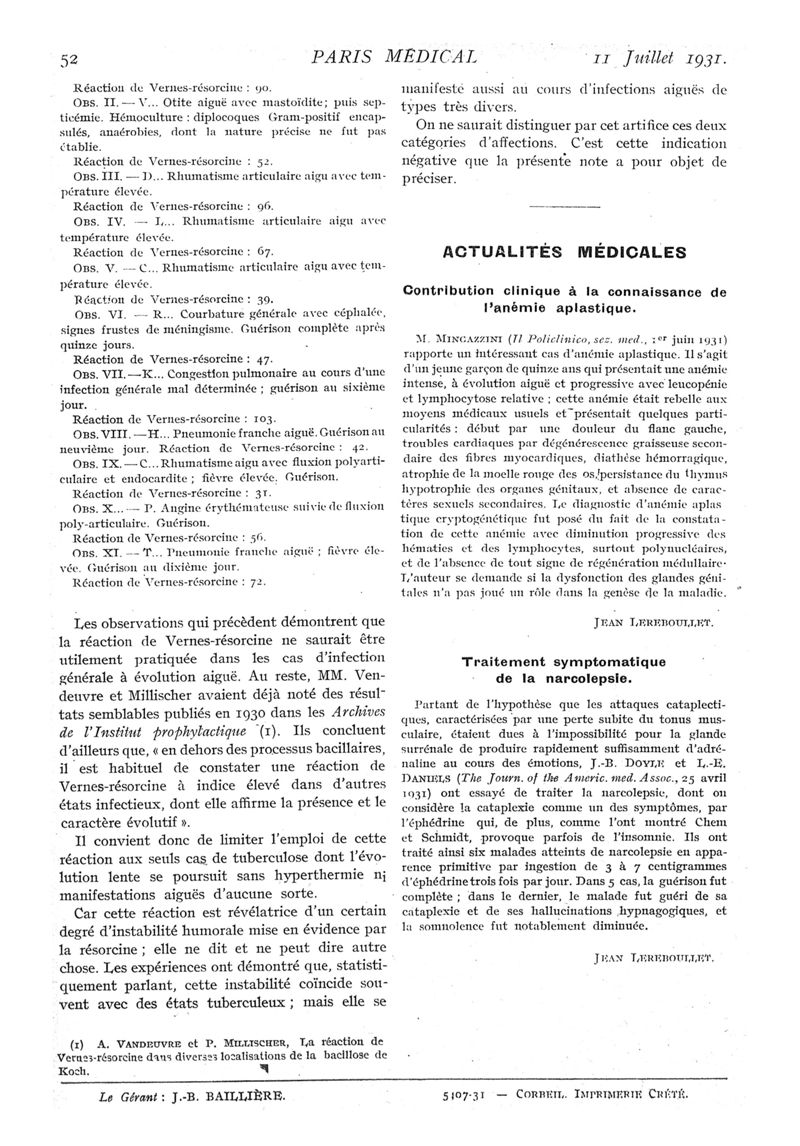 1931, n° 81, partie médicale. -