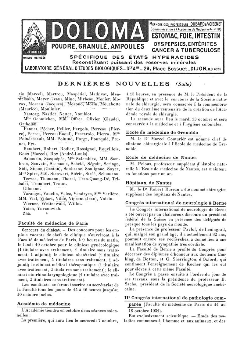 1931, n° 82, partie paramédicale. -