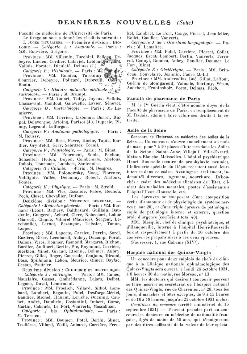 1931, n° 82, partie paramédicale. -