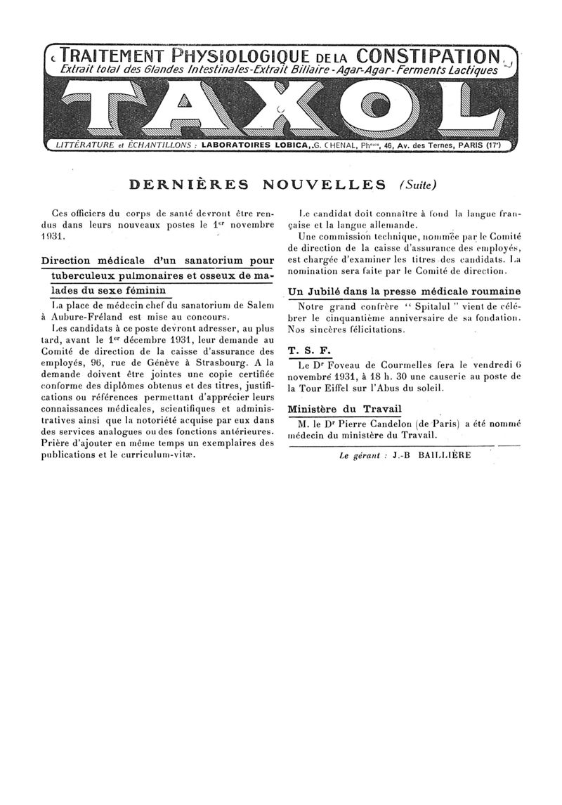 1931, n° 82, partie paramédicale. -