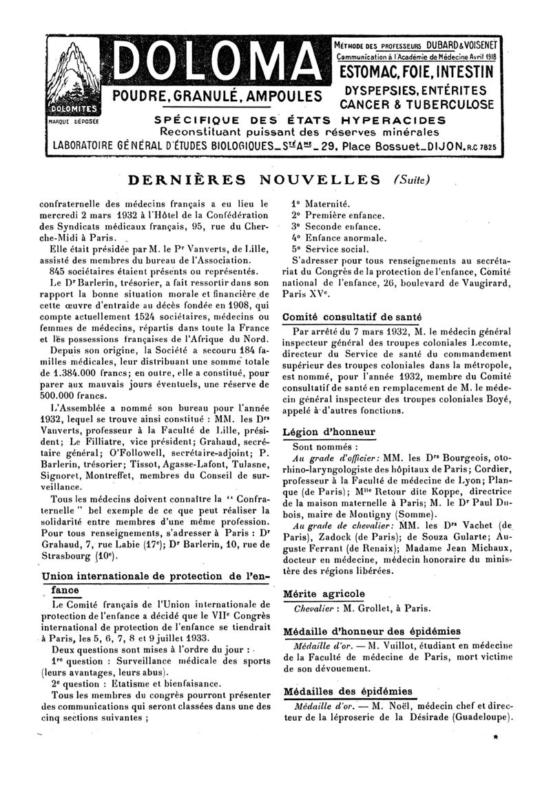 1932, n° 84, partie paramédicale. -