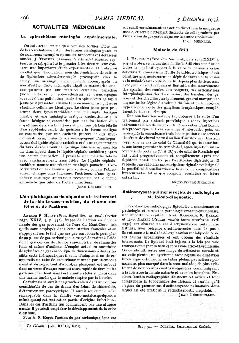 1932, n° 85, partie médicale. -