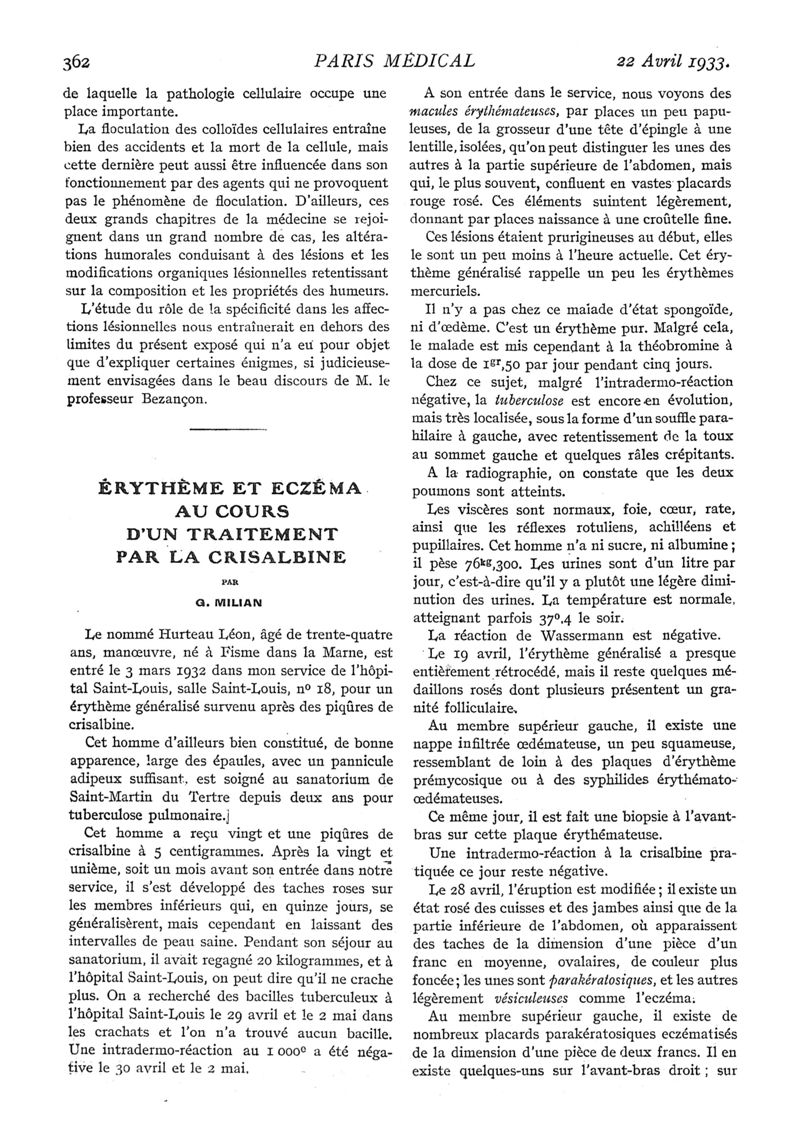 1933, n° 87, partie médicale. -