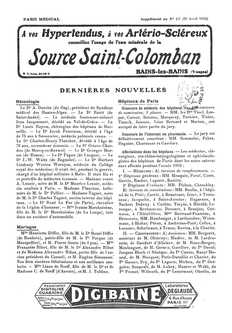 1933, n° 88, partie paramédicale. -