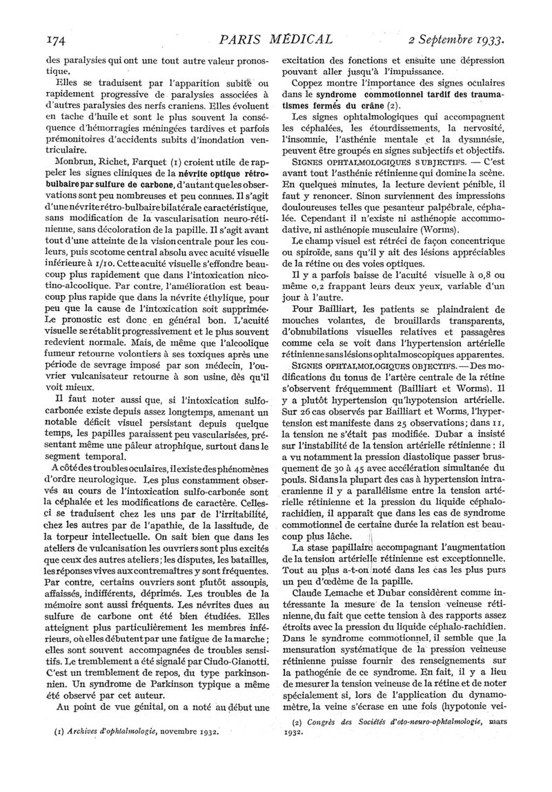 1933, n° 89, partie médicale. -