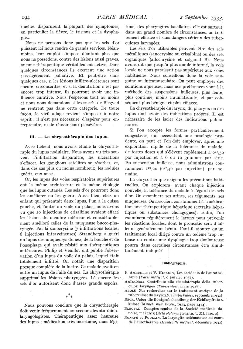1933, n° 89, partie médicale. -