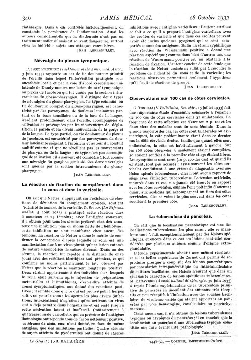 1933, n° 89, partie médicale. -