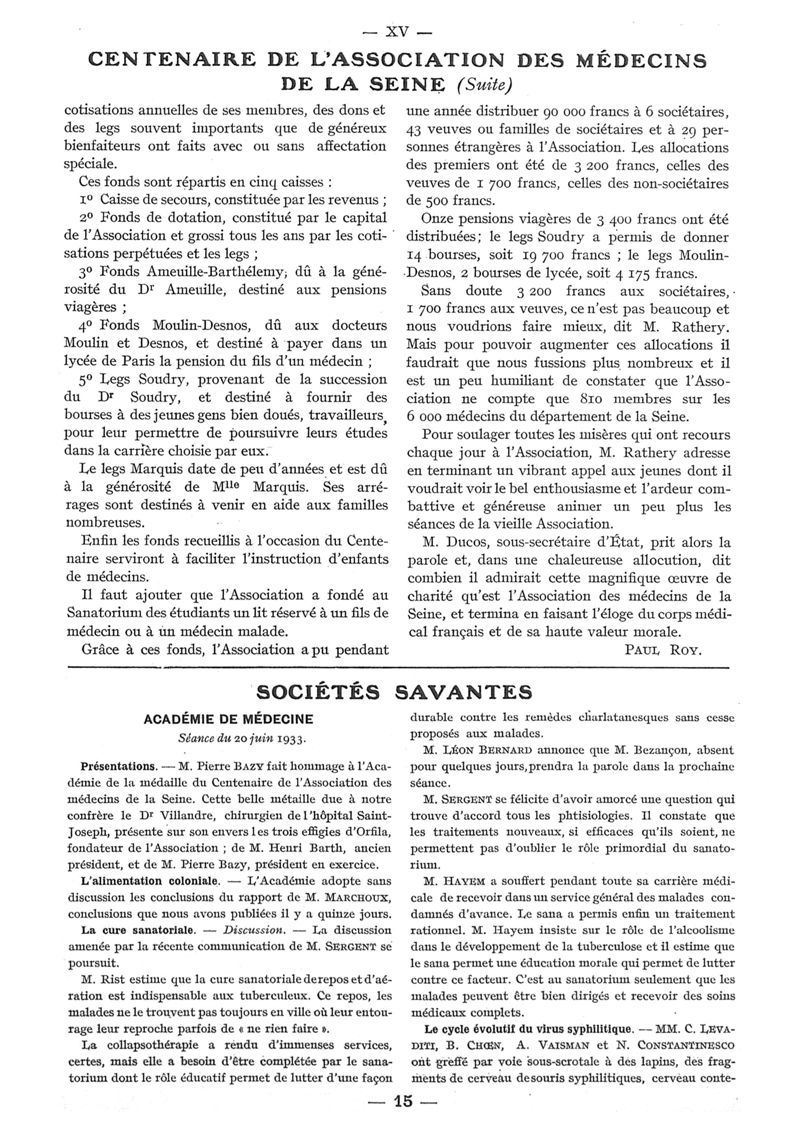 1933, n° 90, partie paramédicale. -
