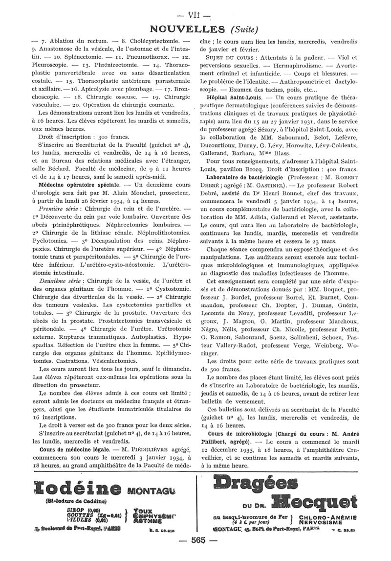 1933, n° 90, partie paramédicale. -