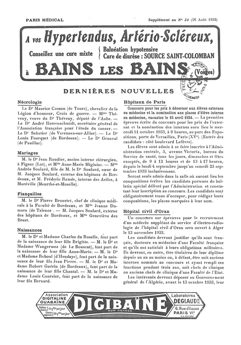 1933, n° 90, partie paramédicale. -