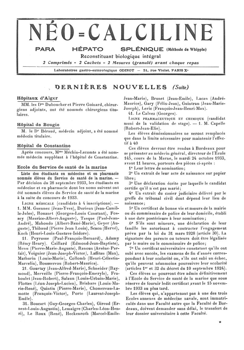 1933, n° 90, partie paramédicale. -